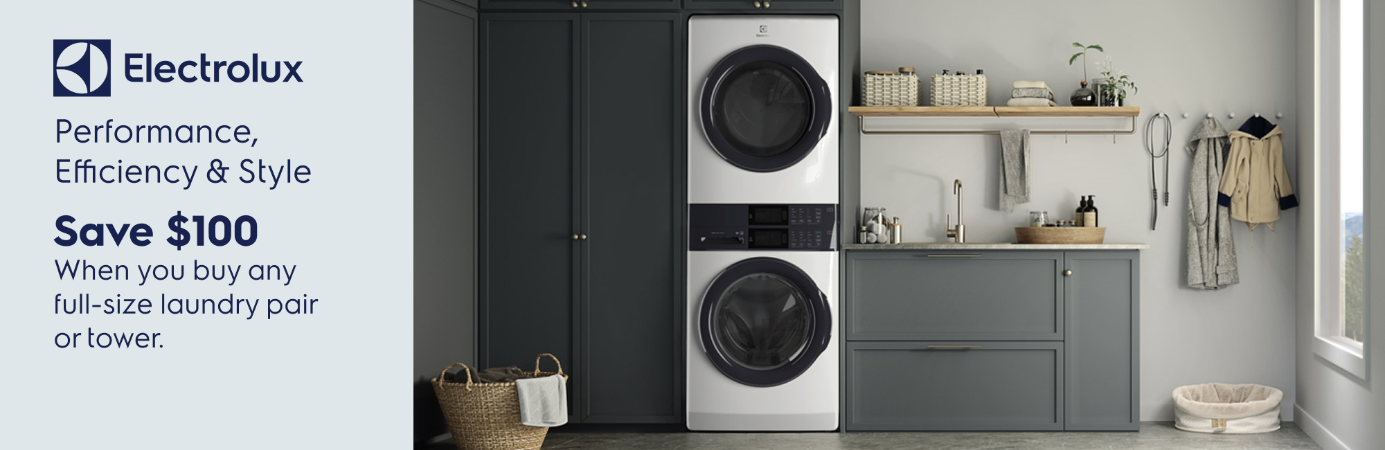 Buy Full Size Washer & Dryer Pair (including laundry tower), Save Additional $100 Offer Valid From Feb 26, 2026 – Apr 15, 2026