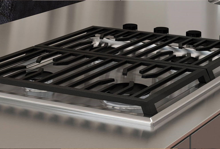 Wolf’s dual-stacked, sealed gas burners provide precise high-Btu heat for fast boils and quick sears, and whispery low flames for delicate simmers and silky sauces. Available in 15", 24", 30", and 36" widths.