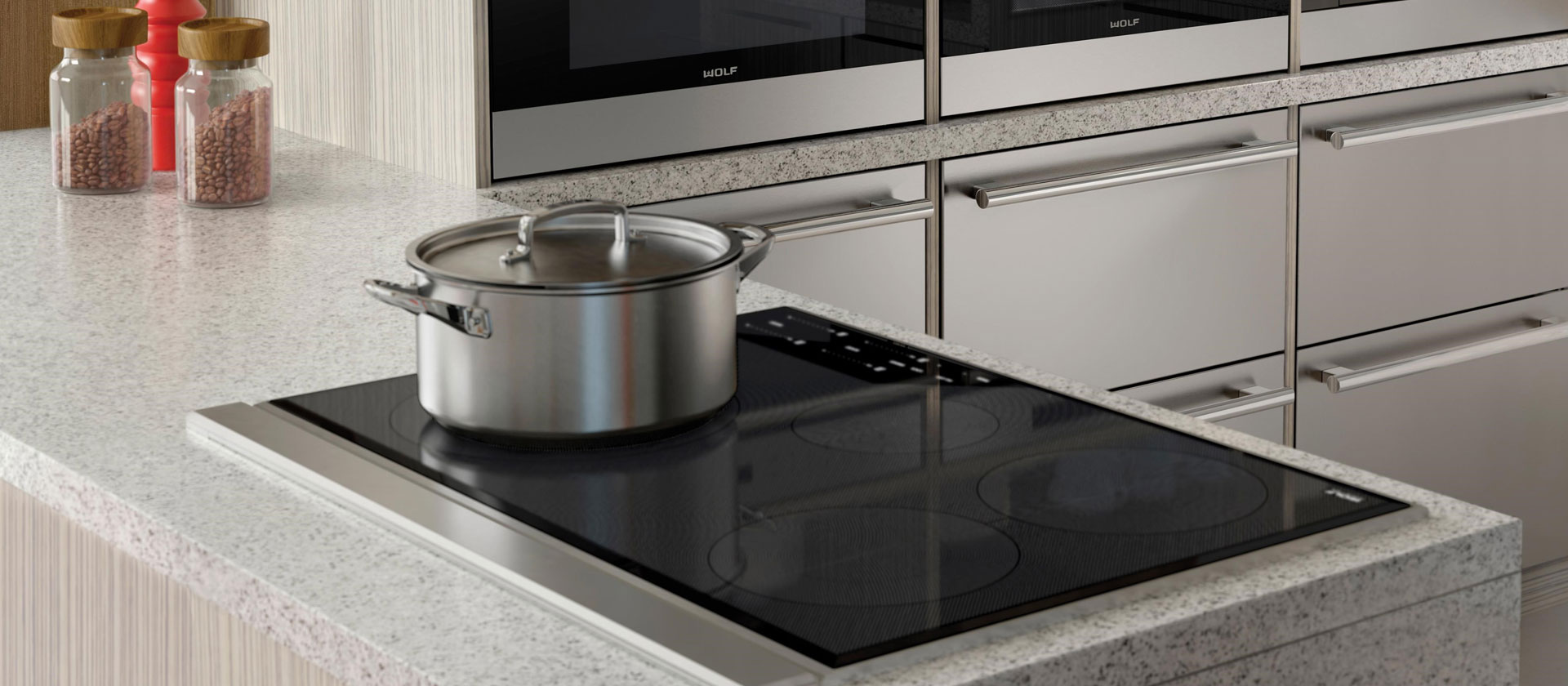Easy, convenient electric Wolf cooktops offer seamless temperature adjustments—including thoughtful extra features like a one-touch melt setting. Available in 15", 30", and 36" widths.