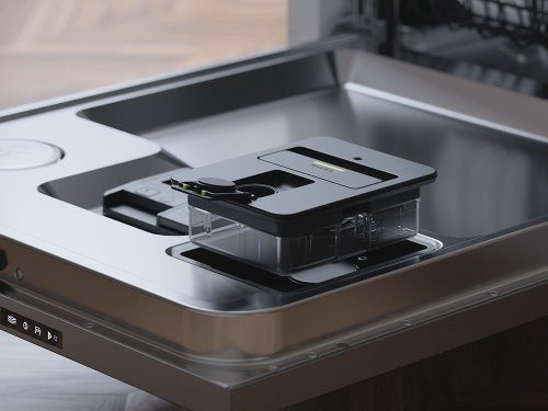 The Aqua Level™ Sensor ensures the exact amount of water. For example, if a plastic bowl turns over and is filled with water, the sensor automatically adds extra water to the process for a premium cleaning result.