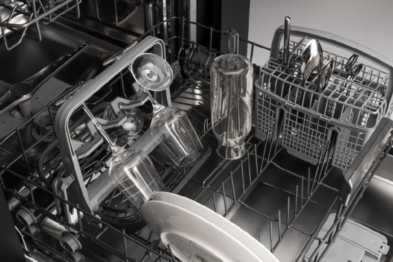 The PowerDry system substantially improves the drying performance especially on glasses and plastic dishes. The fan assist feature is guiding steam into a condensation channel, from where the water is pump out of the dishwasher.