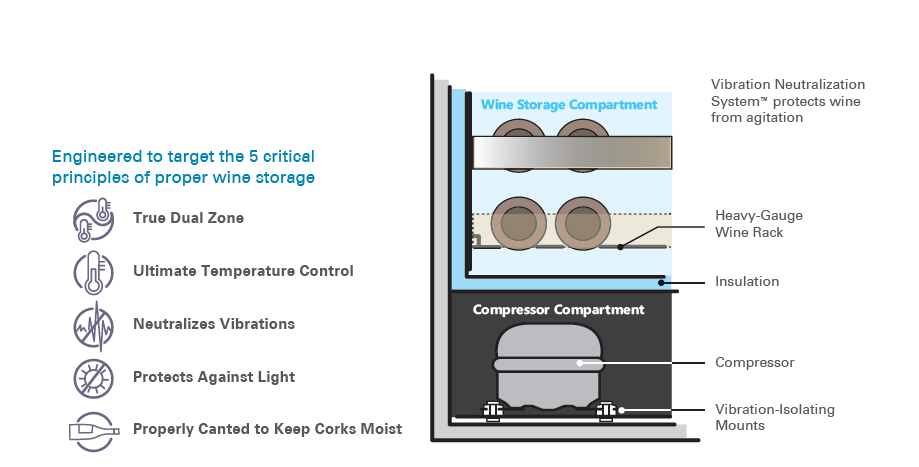 - Vibration Neutralization System™ protects wine from agitation, allowing it to come to full maturation
