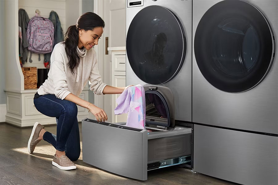 Wash small loads that can't wait or two loads at once with the LG SideKick Pedestal Washer.