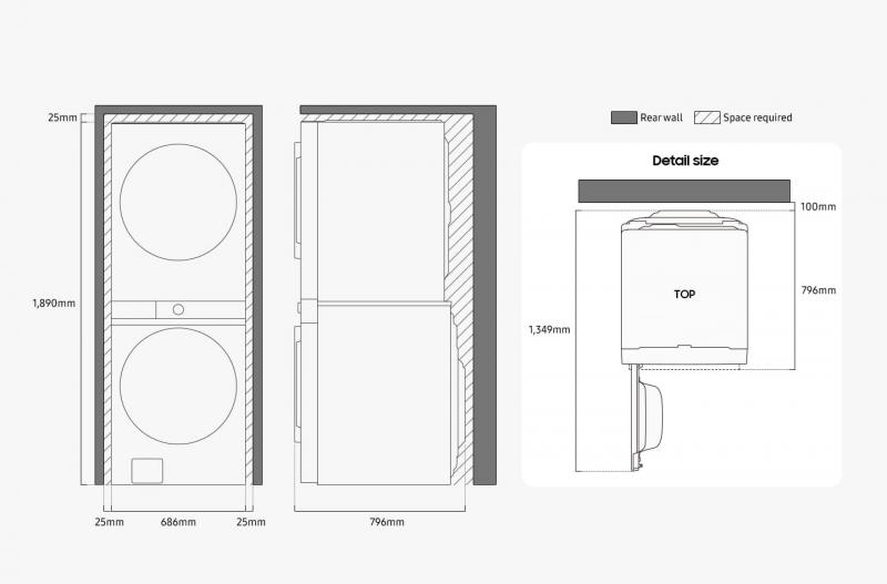 * Available on Android and iOS devices. A Wi-Fi connection and a Samsung account are required. It stores user data, preferences and usage patterns to suggest the most useful options. ** The recommended washed and dried cycle is only based on time and may not be appropriate for the type of fabrics or stain level of the articles being washed. *** A Wi-Fi connection is required at all times, which may increase energy consumption.