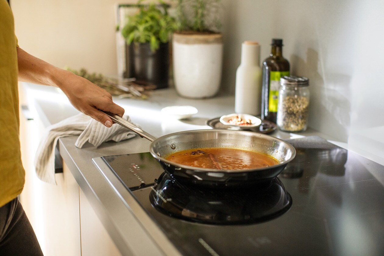 Create a perfect berry reduction or slow-simmered marinara without scorching with our Precise Temperature Control function. Unlike other induction cooktops, our technology uses a sensor to continuously measure pan temperature and automatically adjusts the heat to ensure your pan maintains the temperature you set from start to finish.