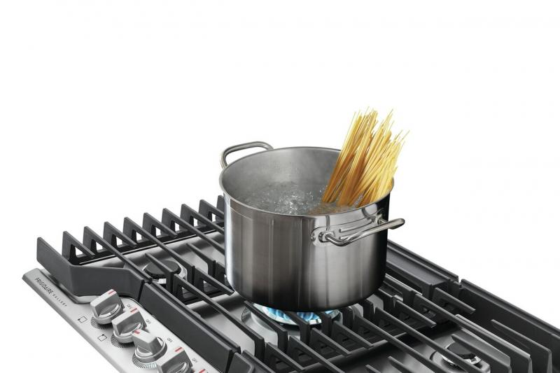 Moving heavy pots and pans across the cooktop is easier with continuous edge-to-edge grates.