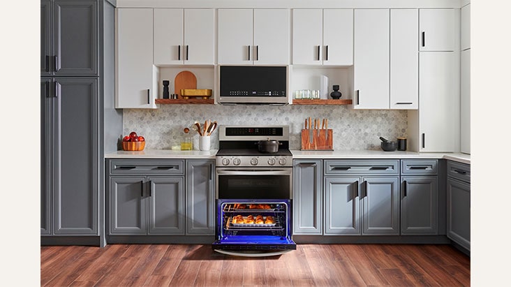 LG ProBake Convection® delivers even, precise heat on every rack, every time. Inspired by pro ranges, it’s the first freestanding range with the heating element moved from the bottom of the oven to the back, so your cookies, cakes, roasts and more are perfectly browned every time.