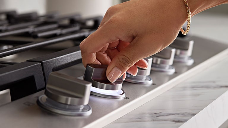 The white LED knobs conveniently illuminate to let you know which burners are on at a quick glance, while delivering a bit of wow with every turn.