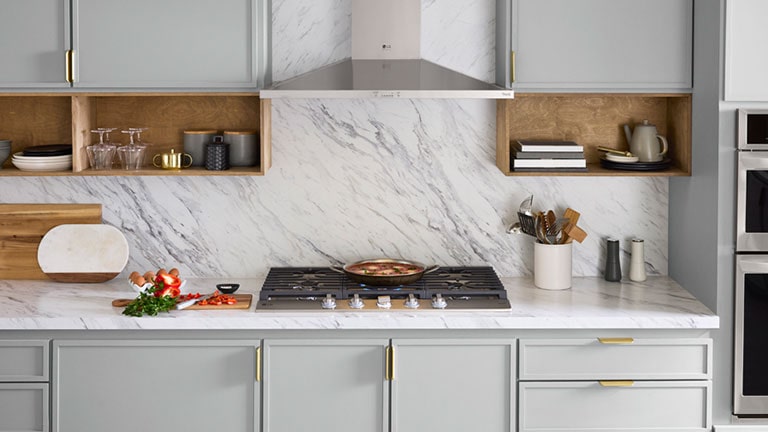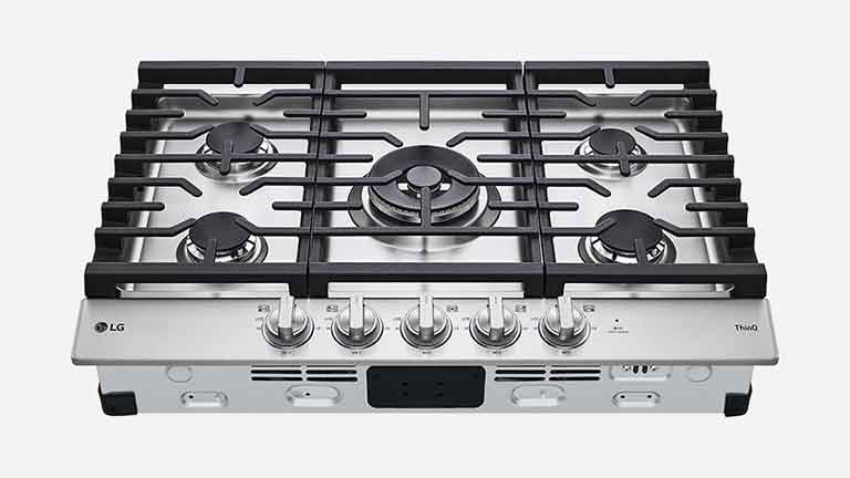 The cooktop burners sync with your LG smart hood or over-the-range microwave via the ThinQ app to auto-activate the fans and lights for a seamless cooking experience.