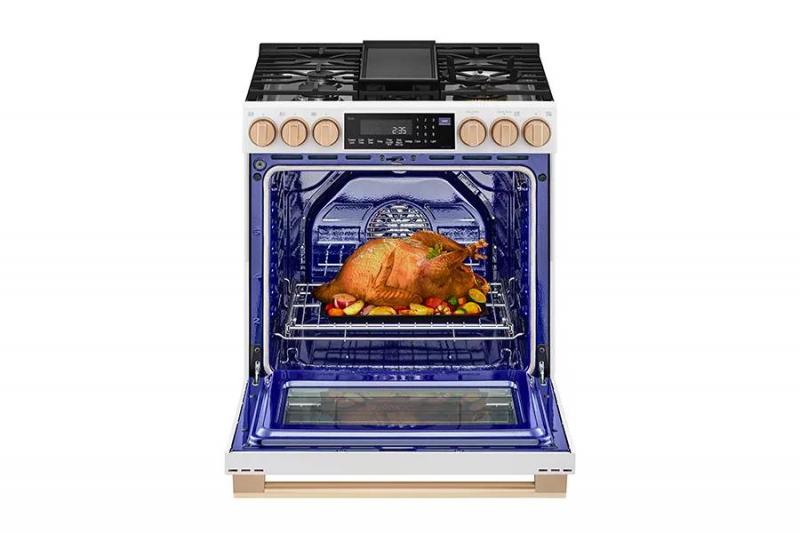 LG STUDIO ProBake Convection® ranges offer the best in convection technology for even baking results on every rack, every time. Inspired by pro-style ranges, this LG STUDIO range has the heating element on the back wall for optimal heat distribution. Enjoy consistent browning on top and bottom, with every cookie baked to perfection.