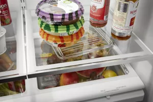 Get the storage your family needs and easily access filtered water with this refrigerator with water dispenser. Crisper drawers provide room to store fruits and veggies in their ideal environment while the produce preserver helps produce stay fresher longer*. This ENERGY STAR® certified refrigerator also has LED lighting to keep food looking as great as it tastes.*Based on commonly purchased produce.