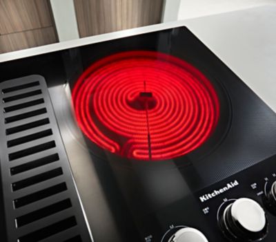 Integrates the ventilation system into the cooking surface so that a separate hood is not needed. Smoke and odors can be removed and taken outside or filtered and recirculated inside. A duct-free kit is available for purchase separately.