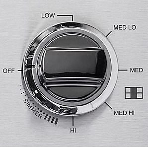 Simmer settings on all burners allows low BTU output for heating delicate sauces.