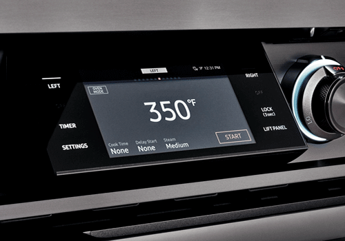 Automatically tilting, 7" smooth touch glass panel provides a full-touch culinary command center for pre-programmed settings and step-by-step recipes. Control oven entirely through digitized touch control panel capable of adjusting temperature in 5 ºF increments.