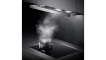 - Unobtrusive flat kitchen hood design thanks to integrated glass panel in the steam screen
