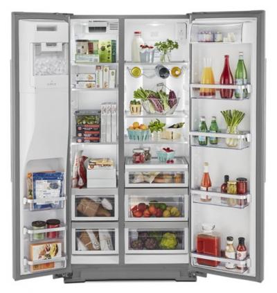 This 22.6 cu ft. side-by-side refrigerator features the Preserva® Food Care System. Its two independent cooling systems help keep food fresh while the FreshFlow™ Air Filter minimizes odors, and the Produce Preserver delays over-ripening. The counter-depth design gives the high-end look of built-in refrigerators.