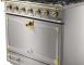 Designed especially for the US market, the single oven "Albertine" range is the baby to the CornuFé family. With one large multi-function convection oven, and seven unique cooking modes, the range has five powerful brass gas burners and one large storage drawer. The CornuFé 90 is available in 8 classic colors and 4 Suzanne Kasler Couleurs. All Colors are available in 3 trim package options, including Stainless Steel and Polished Brass, Stainless Steel and Satin Chrome and Stainless Steel and Polished Chrome.