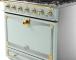 Designed especially for the US market, the single oven "Albertine" range is the baby to the CornuFé family. With one large multi-function convection oven, and seven unique cooking modes, the range has five powerful brass gas burners and one large storage drawer. The CornuFé 90 is available in 8 classic colors and 4 Suzanne Kasler Couleurs. All Colors are available in 3 trim package options, including Stainless Steel and Polished Brass, Stainless Steel and Satin Chrome and Stainless Steel and Polished Chrome.