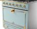 Designed especially for the US market, the single oven "Albertine" range is the baby to the CornuFé family. With one large multi-function convection oven, and seven unique cooking modes, the range has five powerful brass gas burners and one large storage drawer. The CornuFé 90 is available in 8 classic colors and 4 Suzanne Kasler Couleurs. All Colors are available in 3 trim package options, including Stainless Steel and Polished Brass, Stainless Steel and Satin Chrome and Stainless Steel and Polished Chrome.