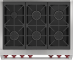 Six dual-stacked burners produce up to 20,000 Btu for fast boils and intense sears and 300 Btu for true simmers and worry-free melts
