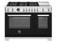 The 4.7 cubic feet main oven cavity is the largest in its class, with dual convection fan for balanced airflow and even temperature baking and roasting on 7 shelf levels. The elegant large temperature gauge monitors the actual temperature in the oven. The extra wide infrared gas broiler is ideal for grilling and searing at high heat. The 2.4 cubic feet auxiliary oven is perfect for smaller dishes and for warming. Both ovens include convenient features such as smooth telescopic glides for the oven shelves and soft-close doors. The edge-to-edge interior oven glass door maximizes interior volume and can be wiped clean without effort.