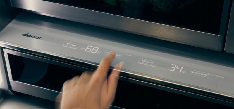 Touch to reveal a display that regulates temperature to preserve freshness.