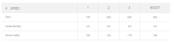 | Controls | 4 Speed Push with White LED |