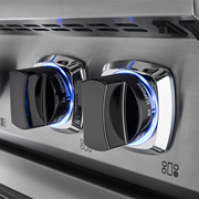 - EXCLUSIVE combination of single 30,000 BTU U-shaped burner and infrared broiler with SureSpark Ignition System (15,000 BTU burner in left oven of 48"W. models)