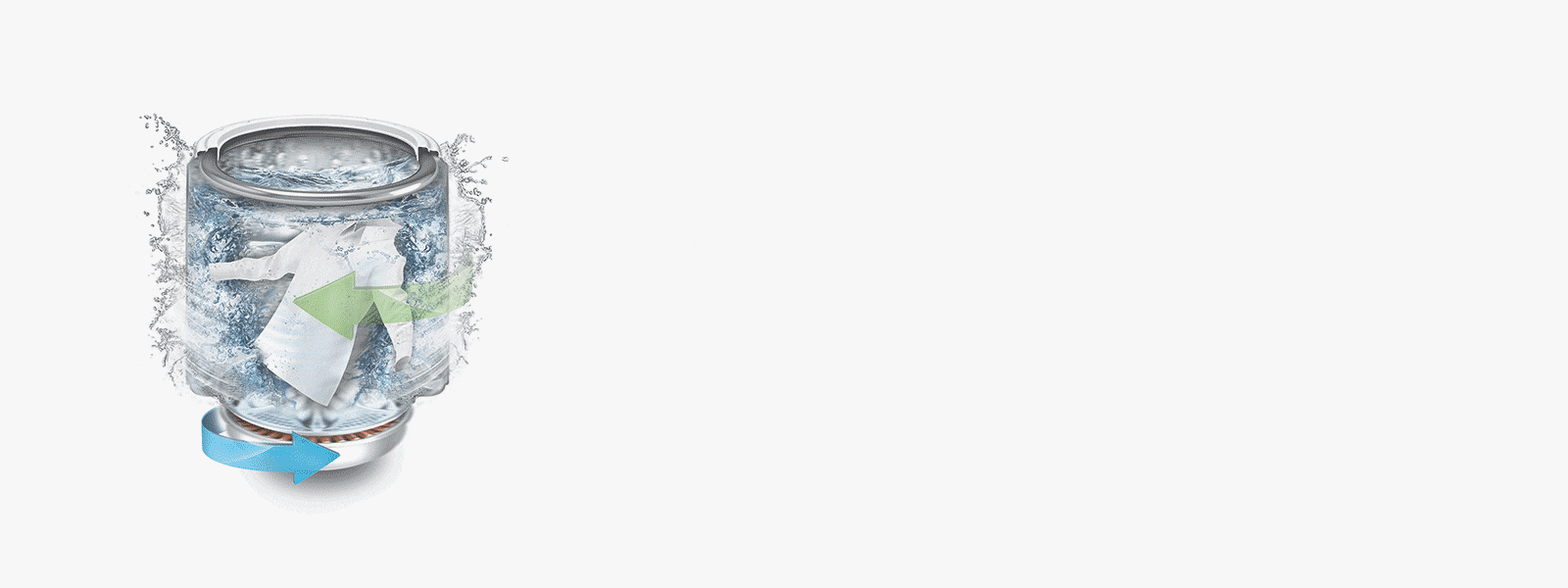 The wash pulsator and tub spin in opposite directions, generating strong water currents to circulate the laundry left and right for a gentle yet potent scrubbing effect.