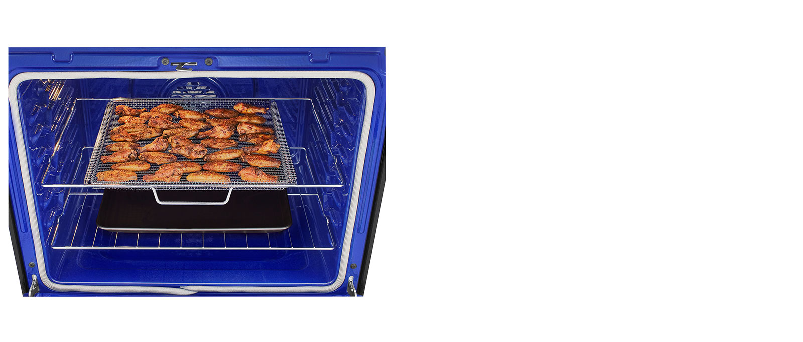 Cook many crispy dishes in one oven with LGs built-in large-capacity air fryer. No pre-heating, no mess, no guilt! The AirFry circulates hot air at high speeds for the perfect, even cook.