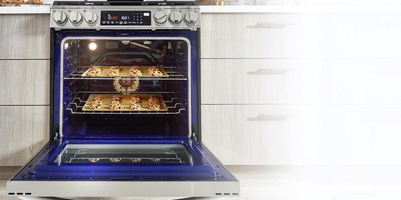 LG ProBake Convection delivers even, precise heat on every rack, every time. Inspired by pro ranges, its the first freestanding range with the heating element moved from the bottom of the oven to the back, so your cookies, cakes, roasts and more are perfectly browned every time.