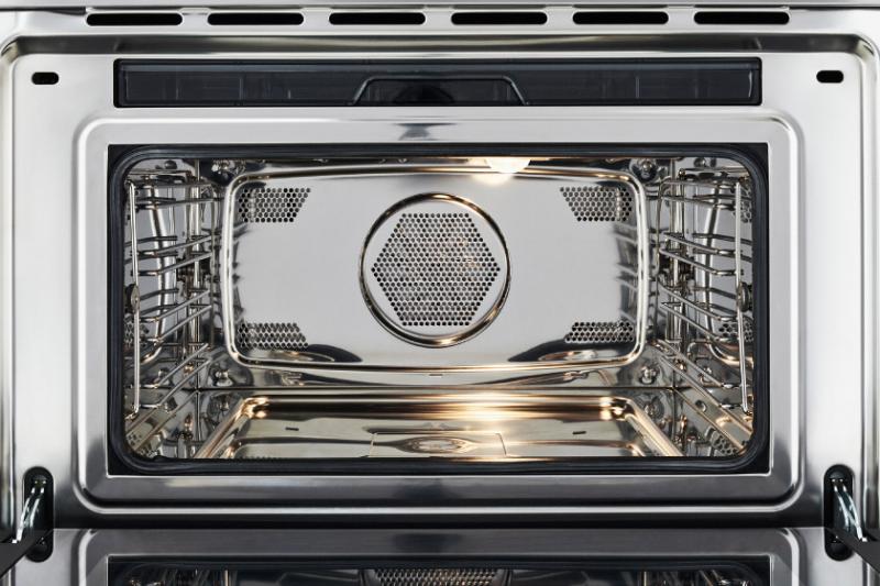 Best-in-class heat distribution thanks to the extra-large convection fan that distributes heat evenly throughout the 1.4 ft3 cavity with 2 usable shelf levels.