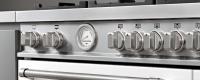 The 4.7 cubic feet oven is the largest in its class, with dual convection fan for balanced airflow and even temperature baking and roasting on 7 shelf levels. The elegant large temperature gauge monitors the actual temperature in the oven. The extra wide electric broiler with optional convection is ideal for grilling and searing at high heat. The 2.4 cubic feet auxiliary oven is perfect for smaller dishes and for warming. Both ovens include convenient soft-motion doors. The edge-to-edge interior oven glass door maximizes interior volume and can be wiped clean without effort.