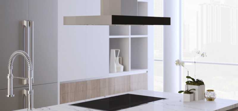 The Island Hood is designed with elegant lines, LED lighting, and a sophisticated glass touch control that seamlessly connects and pairs with your compatible Dacor cooking product.