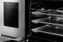 Large oven cavity can accommodate 3 full size commercial cookie sheets.