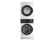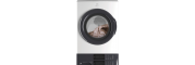 Fully integrated vertical layout takes up half the floor space of a traditional washer/dryer for greater laundry room flexibility. Features a full-sized washer on bottom, a full-sized dryer on the top, and a control panel in the middle for easy access.