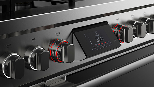 This range has craftsmanship in every detail, with real stainless steel, cast-iron trivets, and beautifully weighted, halo illuminated dials. Each cavity features incandescent lights and full extension telescopic racks. From the robust legs to the powerful cooktop, this Range is built to last.