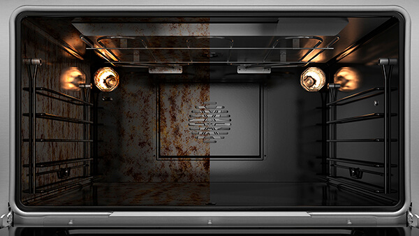 The oven features a self-cleaning function and self-clean proof side racks, which don't need to be removed when using this function.