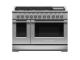 With Professional styling, this large range has six burners delivering powerful high heat, a griddle and two gas ovens.