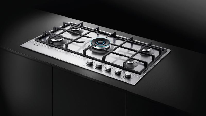 This Fisher & Paykel 36 gas on steel cooktop with five burners is an entertainer's dream with plenty of space when for multiple pots and pans.