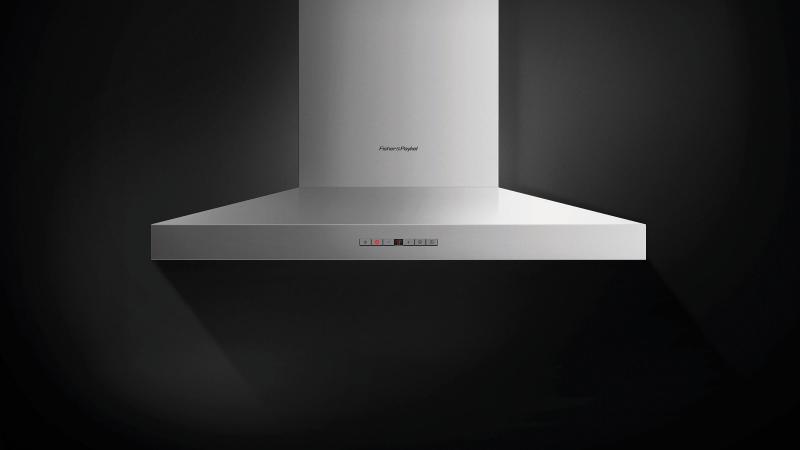 This wall chimney ventilation hood's sleek stainless steel finish will complement any contemporary kitchen and is designed to match the rest of Fisher & Paykel's kitchen appliance family.