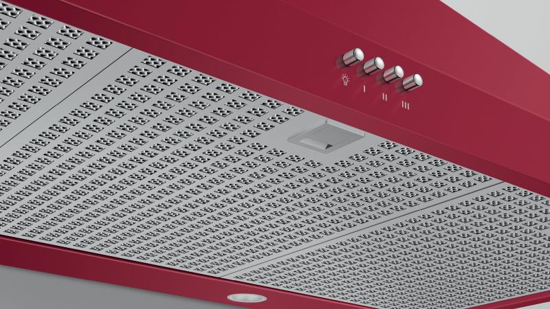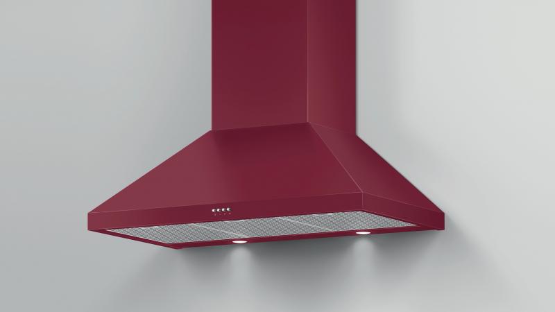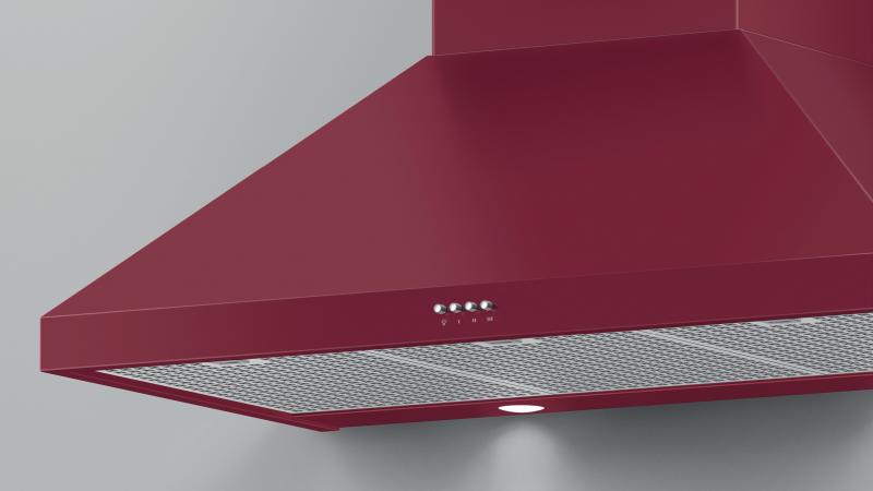 Pairing well with the red Classic Range, this wall chimney range hood extracts steam, grease and cooking odors effectively.
