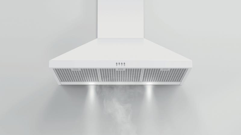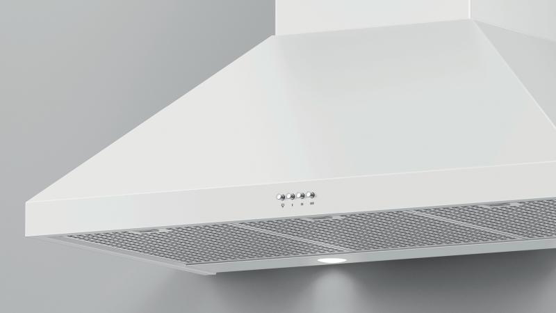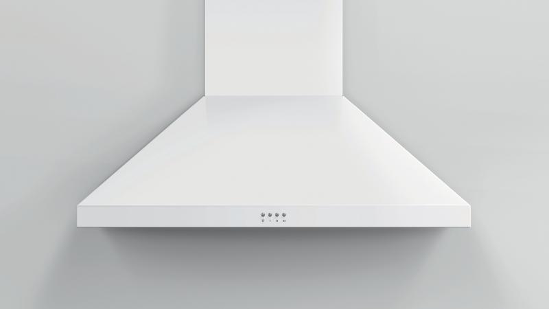 Pairing well with the white Classic Range, this wall chimney range hood extracts steam, grease and cooking odors effectively.