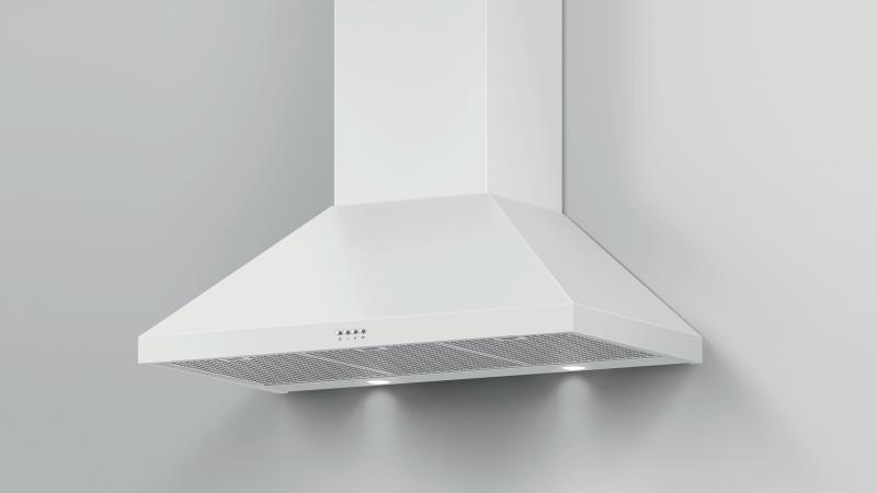 Pairing well with the white Classic Range, this wall chimney range hood extracts steam, grease and cooking odors effectively.