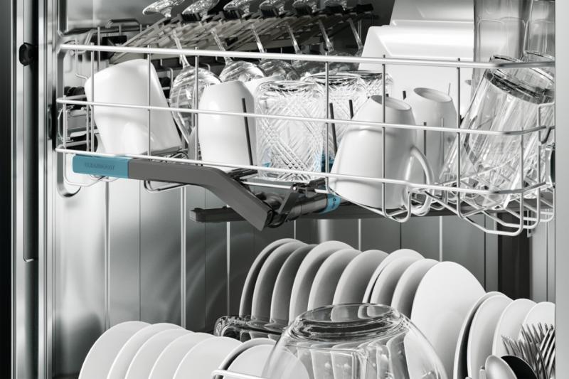 In the event of a leak a sensor is triggered stopping the cycle and containing overflowed water in a tray at the bottom of the dishwasher.