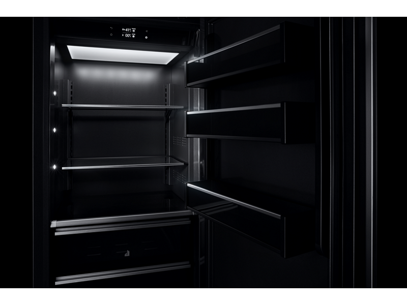 Designed and assembled in Italy, this Built-In Bottom Mount Refrigerator allows you to think beyond the kitchen while keeping ingredients at optimal temperatures. Multi-Point LED Lighting with Canopy Lighting illuminates vibrant foods against the striking Daring Obsidian Interior, while the Panel-Ready options allow you to match the exterior to your aesthetics.