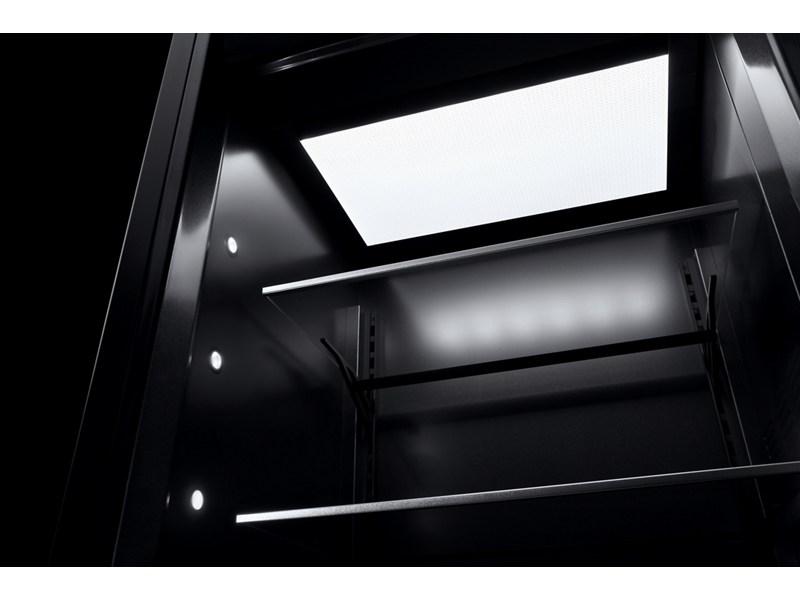 Inspired by volcanic glass, this industry-exclusive dark finish draws attention with high-contrast style. Fine foods and fresh produce emerge like vibrant art, with LED lighting showcasing your ingredients against the alluring interior.