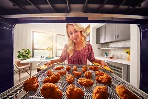 Get the crisp you crave, right from your oven. This 27" Combination Microwave Wall Oven with Air Fry Mode circulates hot air around the included basket to cook with less oil.* Microwave convection cooking turns the microwave into a second oven for small batch bakes like cookies, madeleines and cakes.*When compared to deep frying.