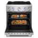 satisfies the needs of the most demanding cooks by combining the precise control of a gas cooking surface and the even baking, roasting and broiling of an electric oven.