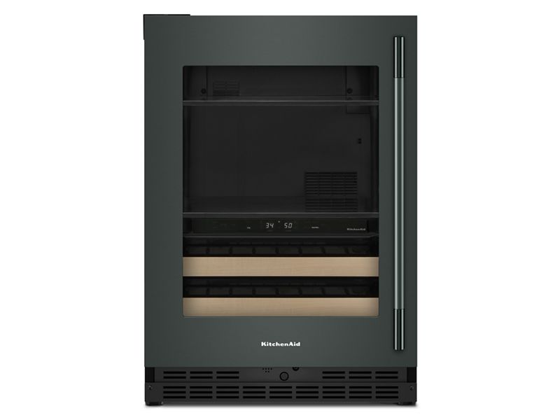 24" KitchenAid Beverage Center with Glass Door and Wood-Front Racks - KUBL524SJP